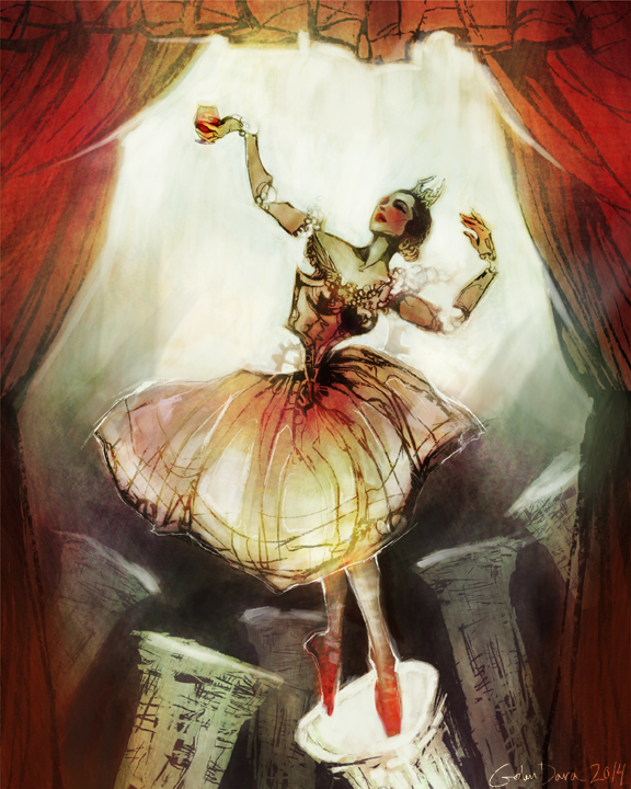 Galen Dara (artwork) sits in a dark corner listening to the voices in her head. She has a love affair with the absurd and twisted, and an affinity for monsters, mystics, and dead things. She has illustrated for 47 North, Edge Publishing, Lightspeed, Fireside Magazine, Apex Publishing, and Goblin Fruit. Recent book covers include War Stories, Glitter & Mayhem, and Oz Re-imagined. She is nominated for the 2014 Hugo Award for Best Professional Artist. You can follow her on twitter @galendara.