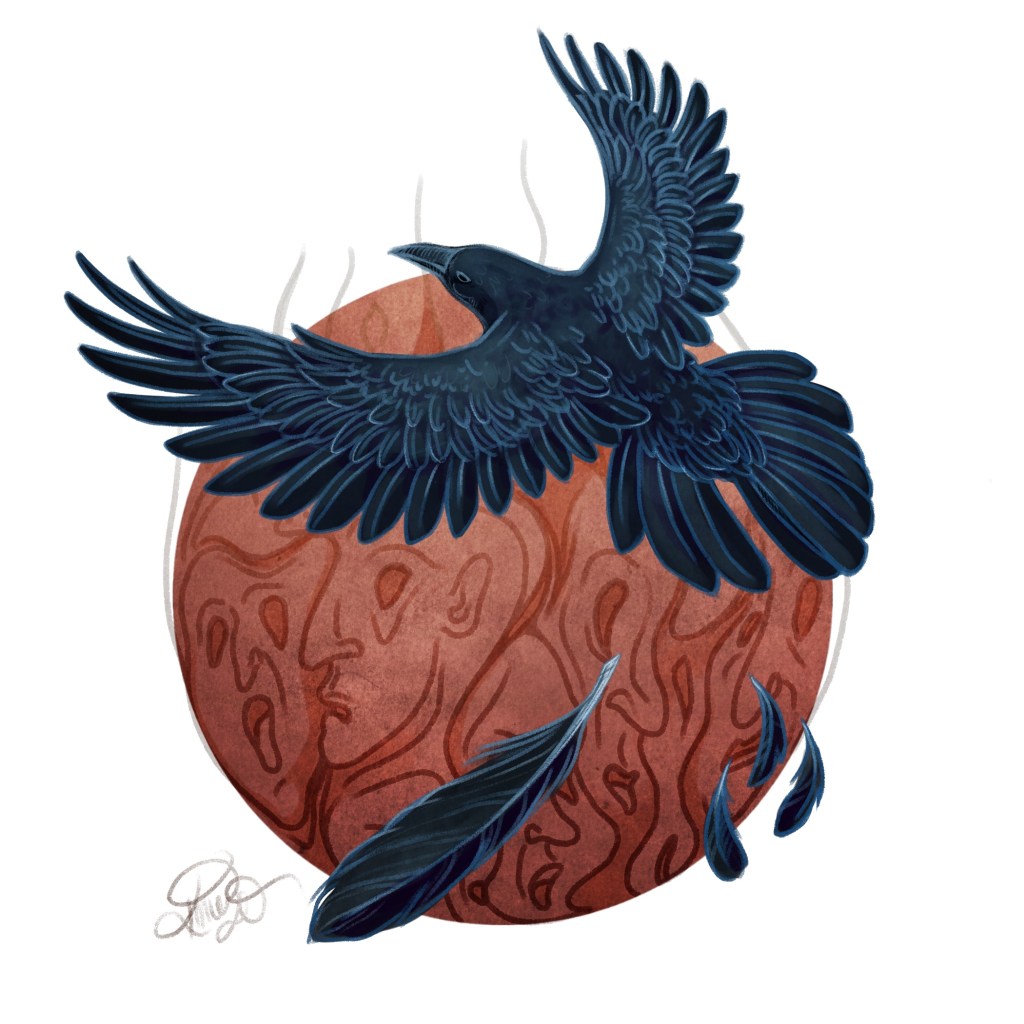 Surely his transmutation is what keeps him alive. In the spirit world, he is a crow, smaller than she but still a burden. She has never tried to carry anything so heavy in raven form, she doesn’t know if she can get him down.